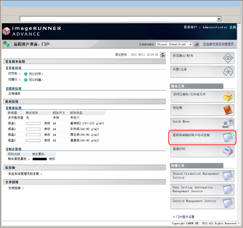 还可以在地址栏中输入如下所示的[高级存储箱的用户访问控制]的URL进行登录。(区分大小写。)