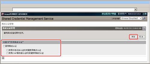 有关正在使用的登录服务或其他服务是否支持Integrated Authentication的信息,请联系当地的授权Canon经销商。