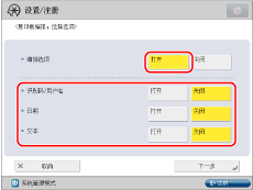 如果已经在“设置/注册”的[功能设置]的[注册页码编排/水印字符]中注册了字符,则可以从列表选择字符。