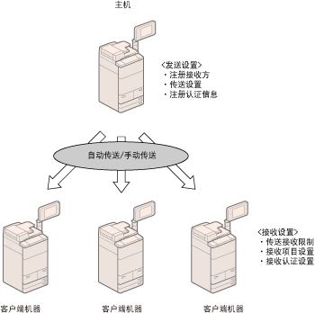 如果主机机器安装了“复印读卡器-F1”而客户端机器没有安装(或反之),则仅传送“系统管理员设置”。