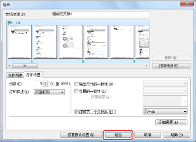 显示打印预览。检查预览→单击[完成]返回[组合]对话框。