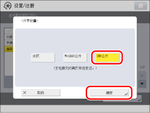 (设置/注册)→[功能设置]→[存储/存取文件]→[高级存储箱设置]→[共享设置]。
