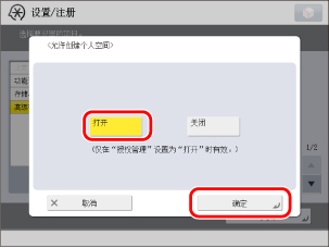 (设置/注册)→[功能设置]→[存储/存取文件]→[高级存储箱设置]→[允许创建个人空间]。