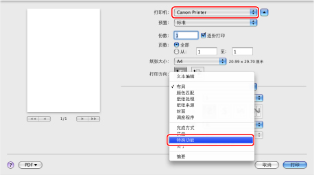 根据正在使用的打印机驱动程序和应用程序软件的类型和版本,屏幕可能有所差异。