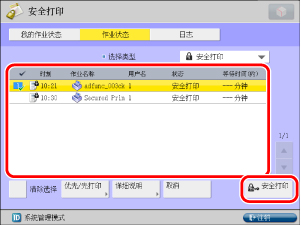 安全打印作业的打印作业编号左侧显示锁定图标。