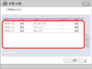 [设置/注册]→<参数选择>的[网络设置]→[IP地址阻止日志]。