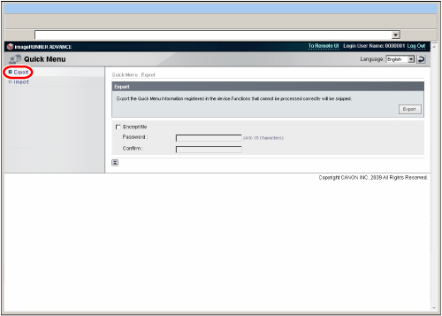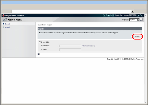 单击[Export](导出)可以显示“Export”(导出)页面。