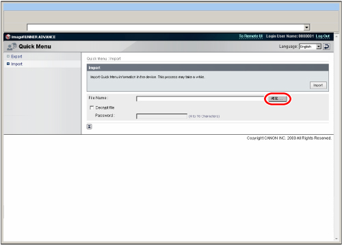 单击[Import](导入)可以显示“Import”(导入)页面。