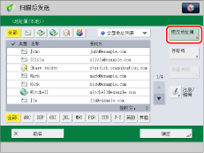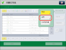 只有同时注册“远程地址簿”和LDAP服务器,才会显示[更改地址簿]。如果仅在本机上注册了“远程地址簿”,则显示[到远程地址簿]。
