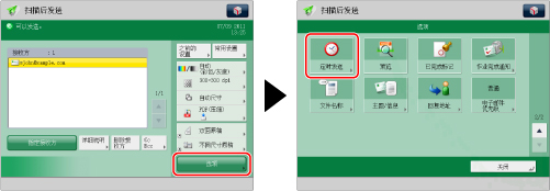 对于已指定预置发送时间的文档,可以检查其状态、取消或更改其接收方。(请参阅“检查和取消发送作业”)