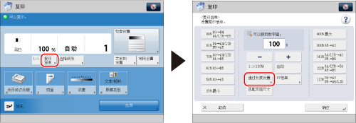 为原稿尺寸和复印尺寸选择水平和垂直的复印倍率。
