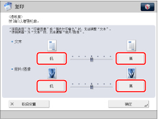 要清晰复印文本或线条,“文本”区域的设置应偏[高]。要复印包含印刷照片或其他半色调的原稿,“照片/图像”区域的设置应偏[低]。