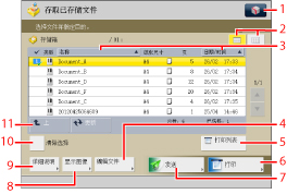 按下可以查看存储在存储箱中的文件的详细说明。 |