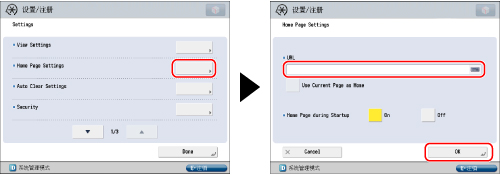 按[Home Page Settings](主页设置)→按<URL>文本输入字段。