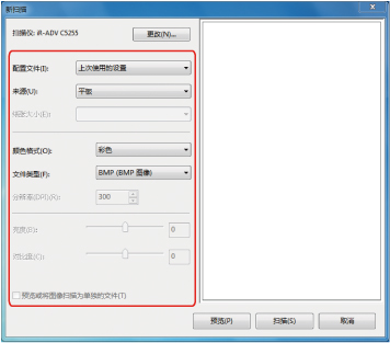 如果单击[预览],显示扫描的文件,但是不存储在计算机中。
