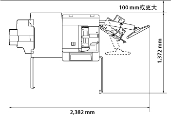 安装了“鞍式分页装订处理器-N1”和标配输稿器时。