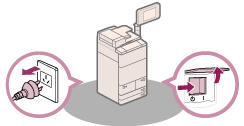 如果本机冒烟或发出异常噪音,请立即关闭主电源开关,从电源插座拔出电源线,然后致电当地的授权Canon经销商。如果在这种情况下继续使用本机,可能会导致火灾或触电事故。还应避免在电源插头附近放置物品,以便随时能够拔出本机的电源插头。