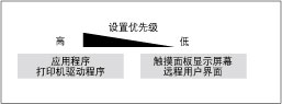对于只能在触摸面板显示屏幕或“远程用户界面”上使用的设置,最新指定的设置优先。