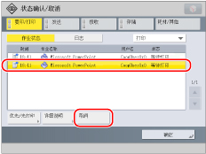 已取消的打印作业在打印作业日志屏幕中会显示<错误>。