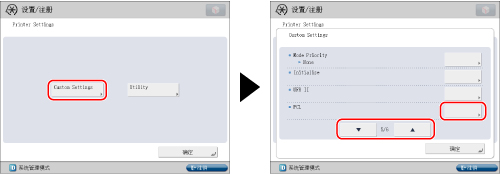按[Custom Settings](自定义设置)→按 直到出现[PCL]→按[PCL]。