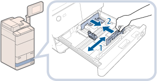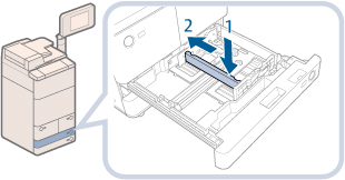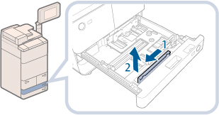 滑动前导板直到其发出“咔哒”声。如果没有按纸盒中添加的纸张尺寸正确地调整前导板,则正确的纸张尺寸可能不会出现在触摸面板显示屏幕上。