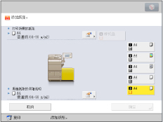 如果打印期间出现提示添加纸张的信息,则在添加正确的纸张后,自动执行剩余的打印作业。如果选择不同的供纸器,剩余的打印作业在按[确定]后开始执行。