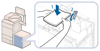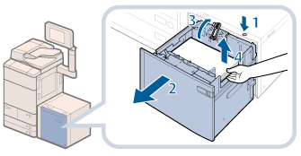 要添加大于B4的纸张,请先关闭纸仓以升高内部的升降装置,打开纸仓,然后添加纸张。如果在内部升降装置处于最低位置时添加大于B4的纸张,则可能无法正确添加纸张,并可能发生卡纸。
