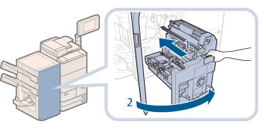 必要时,在更换鞍式装订处理器中的装订针盒前,取出“书本托盘”中的所有输出纸张。