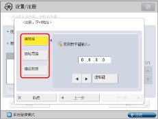 如果在重新启动本机后不能通过DHCP、RARP或BOOTP获得此信息,则输入[IP地址]、[子网掩码]和[网关地址]以使用该步骤中输入的设置。
