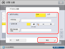 按[默认路由器地址]→输入默认路由器地址→按[确定]。如果不想指定默认路由器地址,则不要填写[默认路由器地址]栏。