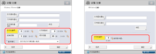 在[文件服务器名]中,输入所需打印服务器所属的文件服务器的名称→在[打印服务器名]中,输入所需打印服务器的名称。