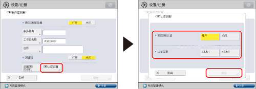 按[SMB认证设置]→指定SMB认证设置→按[确定]。