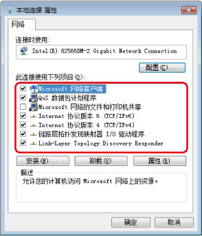 在[本地连接属性]对话框中,选择[Microsoft网络客户端]和[Internet协议(TCP/IP)]/[Internet协议版本4(TCP/IPv4)]。