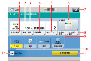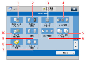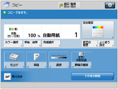 その他の機能のショートカットです。デフォルトでは[仕上げ]、[両面]、[濃度]、[原稿の種類]が設定されています。