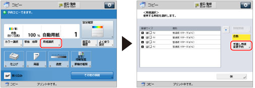 用紙の種類は必ず正しく設定してください。特に厚紙など、特別な種類の用紙にコピーするときは正しく設定されていないと画像不良が起こる可能性があり、定着器が汚れたり紙の巻きつきが発生したりして、担当サービスによる修理が必要になることもあります。