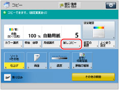試しコピーは、[ソート(1部ごと)]、[シフト(ずらし)]、[90度回転]、[ホチキス]、[表紙]、[挿入紙]、[OHP中差し]で複数部コピーを設定したときに表示されます。