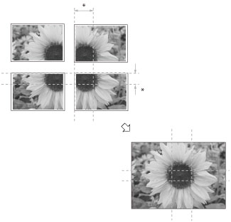 分割出力したコピーは、隣接する画像が重なるようになっています。コピーを貼り合わせるときは図柄の重複するところを重ねてください。