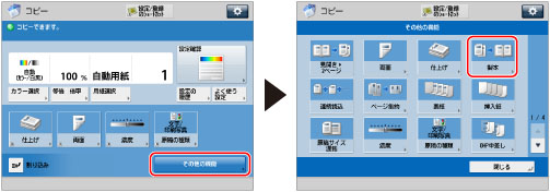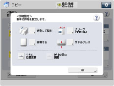 中とじ、分割して製本は、サドルフィニッシャー・AM2/中綴じフィニッシャー・T1を装着している場合のみ設定できます。