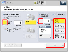あらかじめプリントされている用紙(会社ロゴなど)を合紙で使う場合、[プリントしない]を選択してください。それ以外を選択すると、あらかじめプリントされている用紙の上からコピーされます。