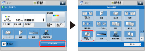 両面]と[原稿サイズ混載]を組み合わせたときに、オモテとウラになる原稿サイズが異なると、それぞれのサイズにあった用紙に片面コピーされます。 |
