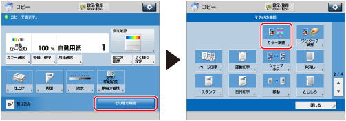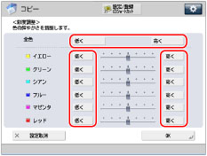 [フルカラー時の鮮やかさ設定]で、フルカラーモード時の色調を変更できます。(→フルカラー時の色味を鮮やかにする)