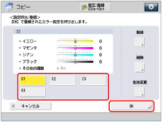 文字を入力していない状態で[OK]を押すと、キーの名称はC1 ~ C4 になります。