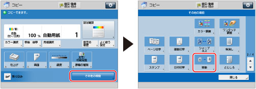(テンキー)で入力した位置に移動してコピーします。オモテ面、ウラ面の移動先を別べつに設定することもできます。