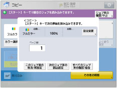 他のコピーモードと一括して設定を解除するには、[ジョブ結合中止]を押します。