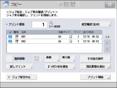 選択したジョブ束を試しプリントします。選択したジョブ束に設定したコピーモードでプリントされます。