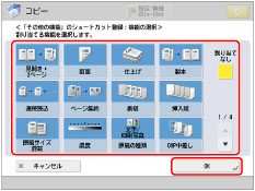 [その他の機能]の中でよく使う機能のショートカットを設定できます。設定したショートカットはコピー(クイック)画面の基本画面上に表示されます。
