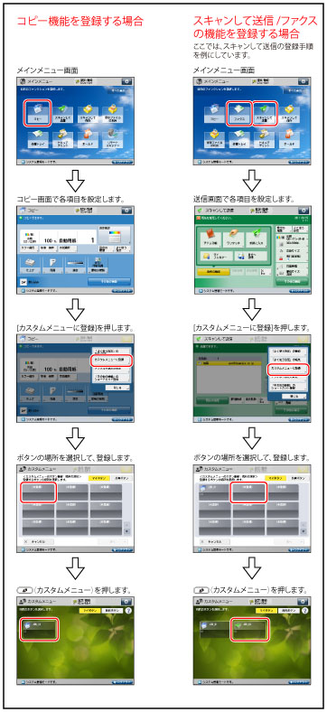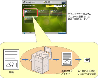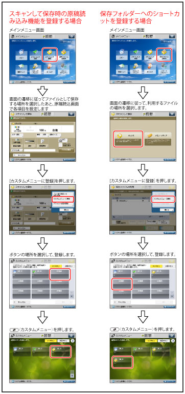 マイボタン/共有ボタンの登録方法についての詳細は、スキャンして送信機能を例に「マイボタン/共有ボタンを登録する」で説明しています。