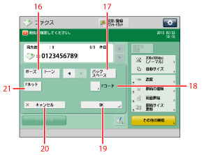 Fネットのファクス番号を入力します。[Fネット]を押すと、「.」と表示されます。(→Fネットのおもなサービス)