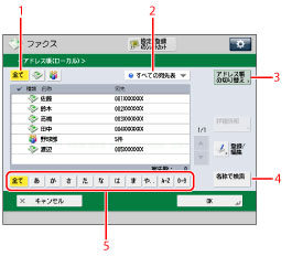 (ファクス)、 (グループ)を押すと、それぞれの宛先を表示します。 |