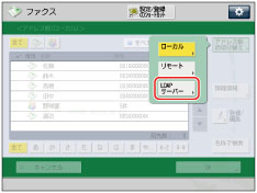 [アドレス帳の切り替え]は、リモートアドレス帳とLDAPサーバーが登録されているときに表示されます。LDAPサーバーのみが登録されているときは[LDAPサーバーへ]が表示されます。